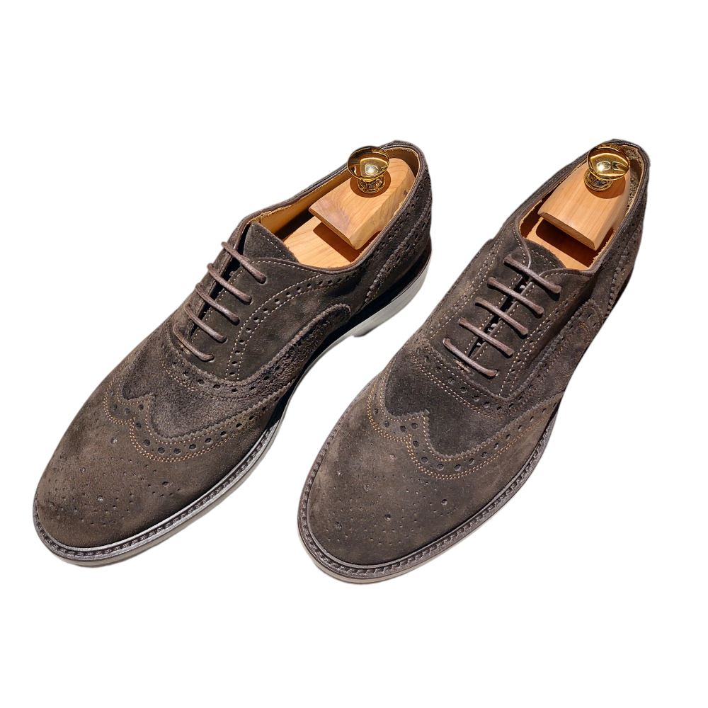 A touch of timeless elegance for your wardrobe: introducing our wingtip brogues in fine dark brown suede. This shoe, a symbol of classic refinement, is entirely handmade in Italy, guaranteeing the excellence that only true craftsmanship can offer. The iconic design with the characteristic swallowtail toe combines with the softness of the suede, creating a...