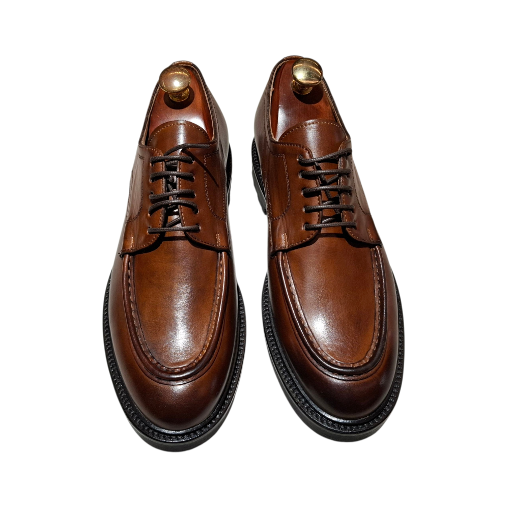 Elegance should never compromise comfort. Discover the perfect harmony between Italian shoemaking tradition and a design designed for your well-being with our Alce Derby shoes in a rich dark brown . These handcrafted shoes were created for the man seeking a shoe with a strong personality, combining impeccable aesthetics with an exceptionally comfortable...